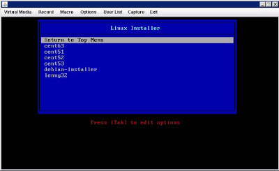 そして対象サーバをpxebootすると、弊社のサーバでは以下の様なメニュー画面が表示されます。