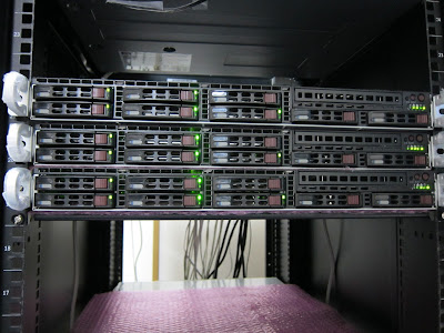 出荷前テスト中のサーバたちです。