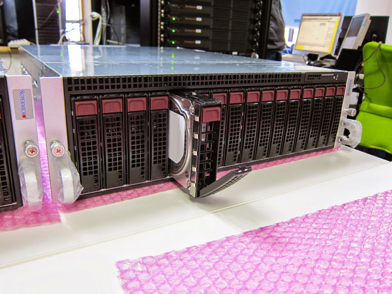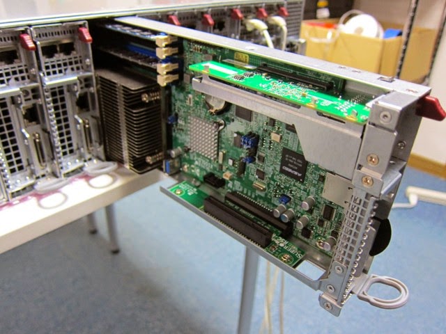 3Uのシャーシに3.5インチのHDDベイが16個並んでいて、一見ストレージサーバのように見えます。しかし、背面をのぞいてみると...