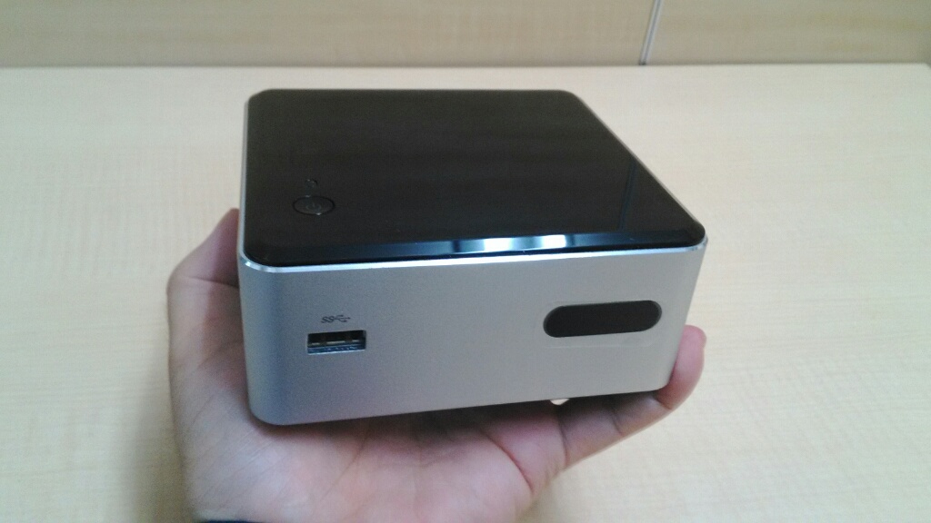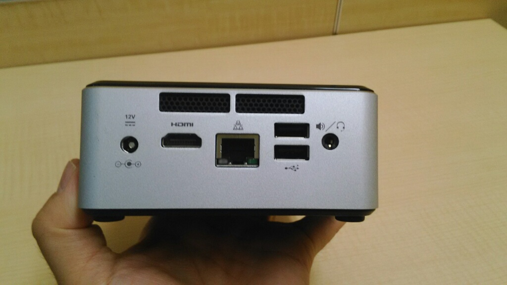 先日、会社で使っているデスクトップパソコンを新しくしました。パソコンのモデルは、IntelのNUC BOXDN2820FYKH0というやつで、Celeron N2820というデュアルコアHTなCPUが乗っています。このCPUはTDPがわずか7.5Wととても低消費電力で、電気代が安く済むので、各拠点のルーターとしても重宝しています。今回はルータ用に買ったあまりをデスクトップ用に転用しました。