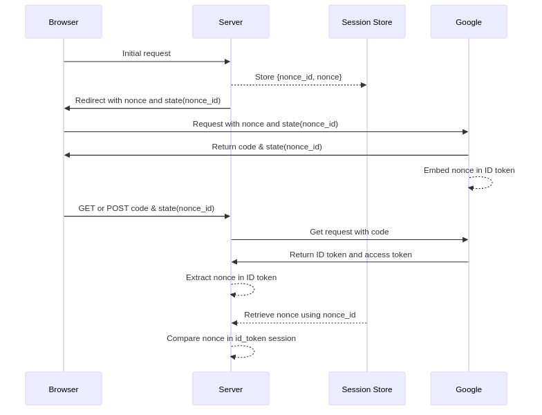 This combination ensures that only Google can respond to our original authentication request, preventing any malicious sites from initiating or hijacking the authentication flow.