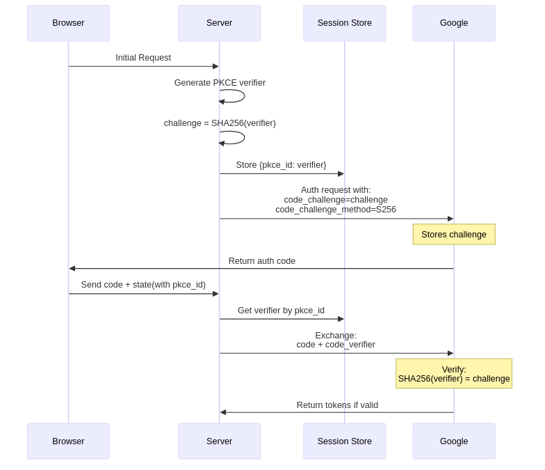 PKCE ensures that only the client that initiated the authentication flow can exchange the authorization code for tokens: